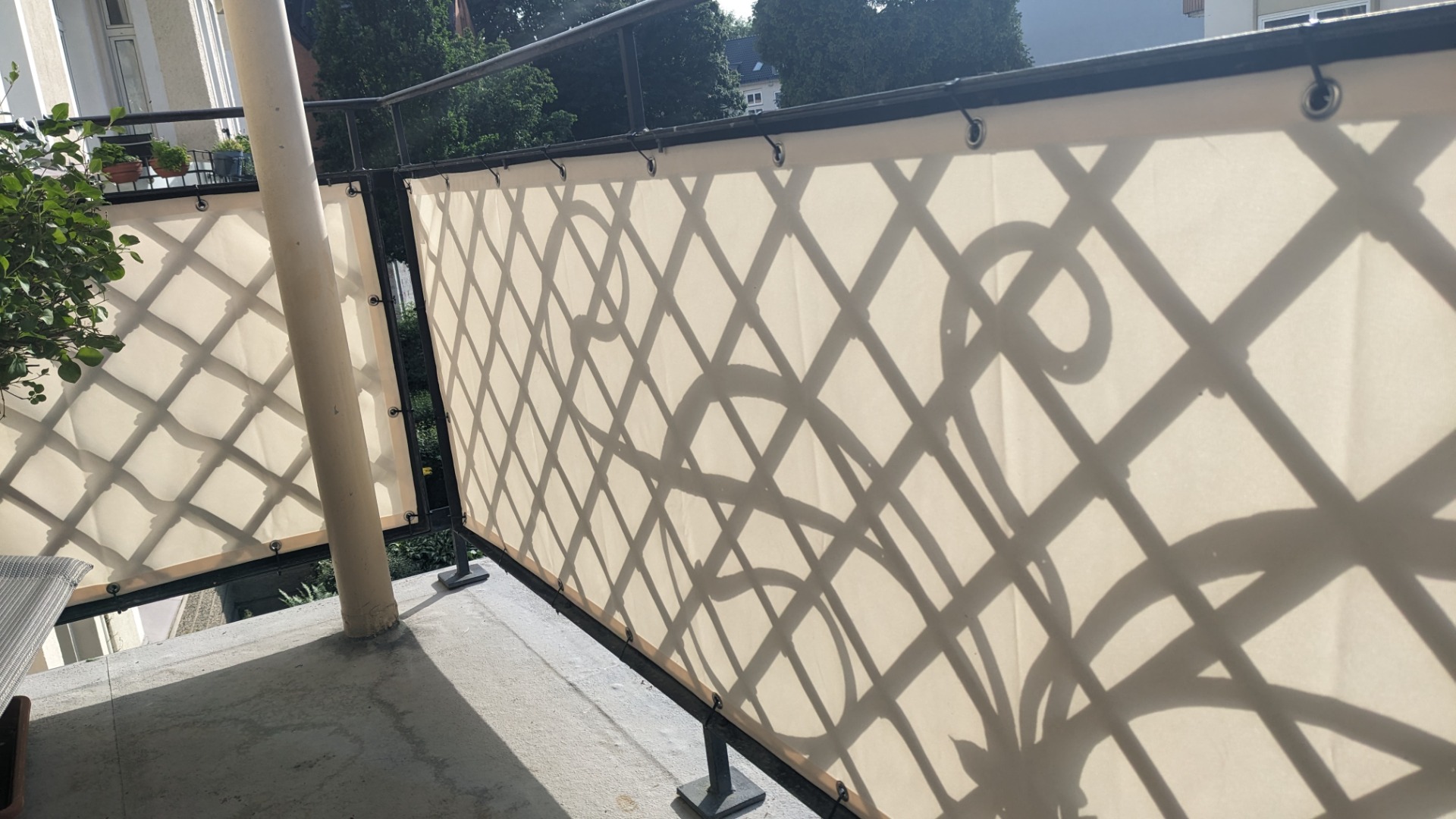 Belátásgátló termékünk egyedi méretben készül, hogy tökéletesen passzoljon erkélyének korlátjára, szélességében és magasságában egyaránt. Funkcionális és magas minőségű termék, ami elegáns megjelenést kölcsönöz erkélyének. A belátásgátló textil extrém strapabíró, kosztaszító, időjárás és UV álló. Előnyei közé tartozik, hogy 40°-on mosógépben mosható, illetve 110°-on vasalható is, élénk színeit hosszú távon megőrzi. Ez a típusú Olefin anyag 37 gyönyörű színben áll rendelkezésre, hogy erkélyéből igazi stílusos oázist varázsoljon. A magas szálsűrűségnek köszönhetően tökéletesen védi privátszféráját.